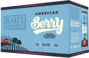 Blake's Backyard Berry hard cider is an 8% ABV imperial cider made with a mix of sweet, tart, and dry apple flavors, and real blueberries.