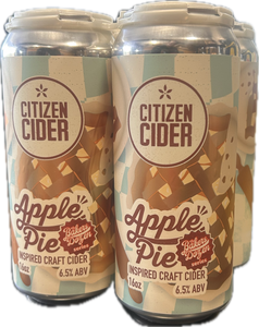 Citizen Cider's Apple Pie flavor combines a hazy cider base with notes of vanilla and cinnamon, aiming to capture the essence of a classic apple pie.