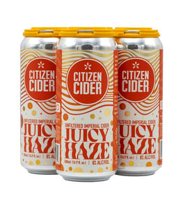 Citizen Cider's Juicy Haze is described as an unfiltered imperial cider with a "farm-fresh apple juice" flavor profile.