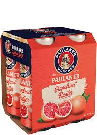 Paulaner Grapefruit Radler is a refreshing, fruity-tart beer with a balanced flavor profile. It blends 50% of Paulaner's classic Münchner Lager with 50% naturally cloudy grapefruit lemonade, resulting in a 2.5% ABV beverage