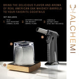 - Includes: 13 oz. lowball glass, authentic American oak whiskey barrel plank, and a handheld butane torch (fuel NOT included)