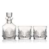A repeating rainbow motif pressed into lead-free crystal gives these textured tumblers Art Deco decadence. Paired with a matching petite liquor decanter, this stackable barware saves space on your bar cart and adds some Gilded Age style to your glassware collection.