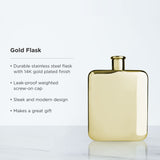 Curious how even the best liquor tastes better from a golden flask. Ours is plated in 14-karat gold, with a liquid-tight lid and six-ounce capacity. Raise a toast to living in a Golden age.