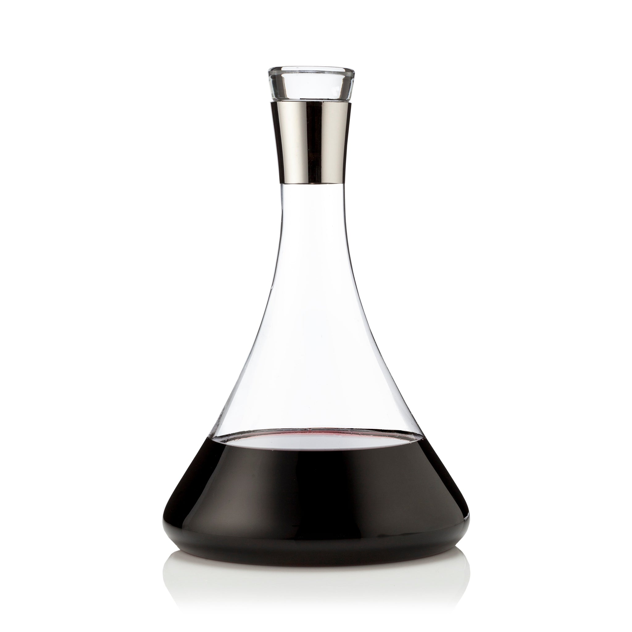Add a sleek chrome band to an already streamlined decanter and play mixologist from your home bar cart, or sommelier in your dining room. The pyramidal bottle holds 60 ounces of fine wine or liquor and allows a precise, clean pour into every glass.