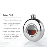 Don’t be left high and dry. Our stainless steel five-ounce flask incorporates a glass porthole window, letting you keep an eye on your cache. Liquor level below the scope? Time to refill.