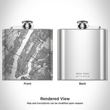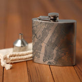 Custom engraved map of New York, New York and coordinates on 6oz hip flask. Includes canvas bag and funnel. Map and inscription can be customized. Weight - 0.4lbs. Measurement - 5in x 1in x 4in.