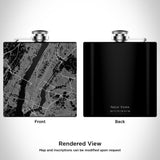 Custom engraved map of New York, New York and coordinates on 6oz hip flask in matte black. Includes canvas bag and funnel. Map and inscription can be customized. Weight - 0.4lbs. Measurement - 5in x 1in x 4in.