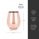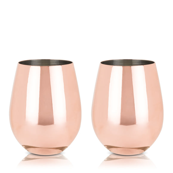 Stainless Steel Stemless Wine Glasses in Copper Set of 2