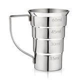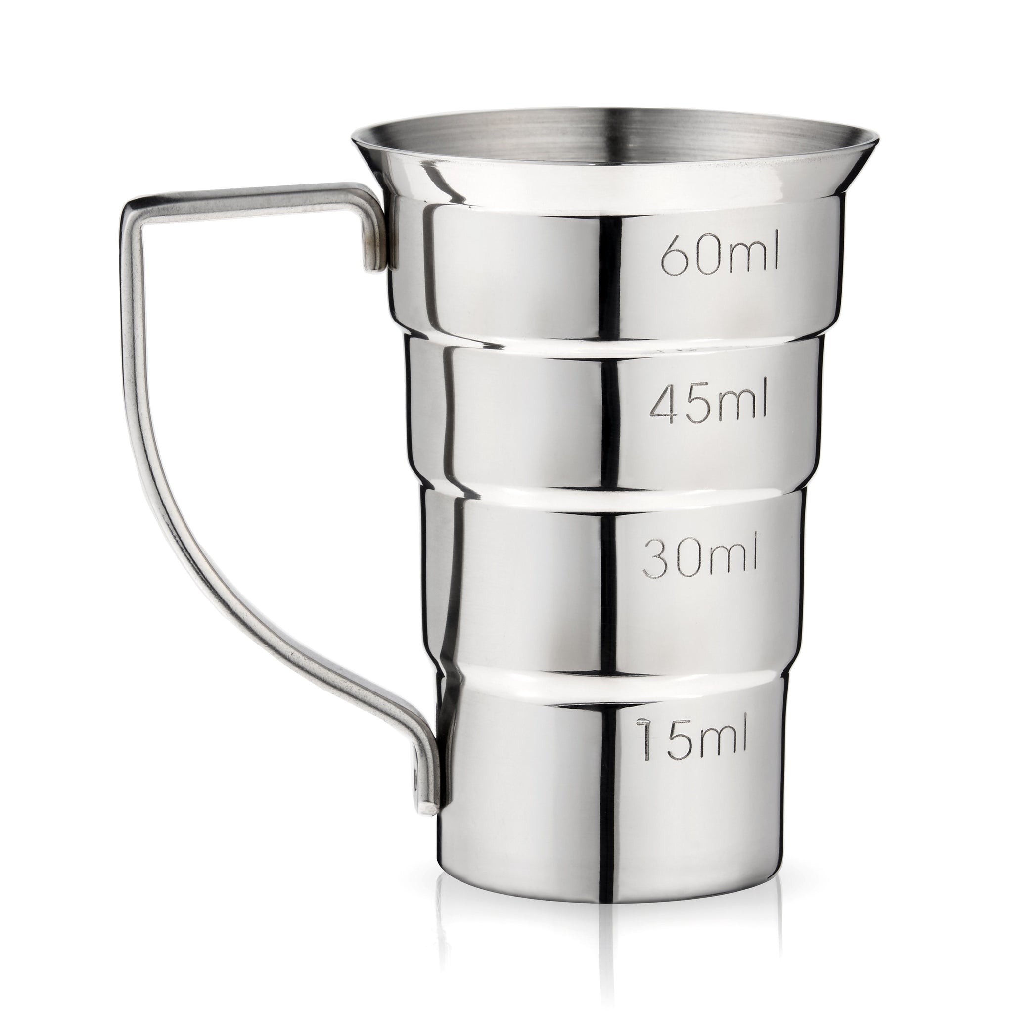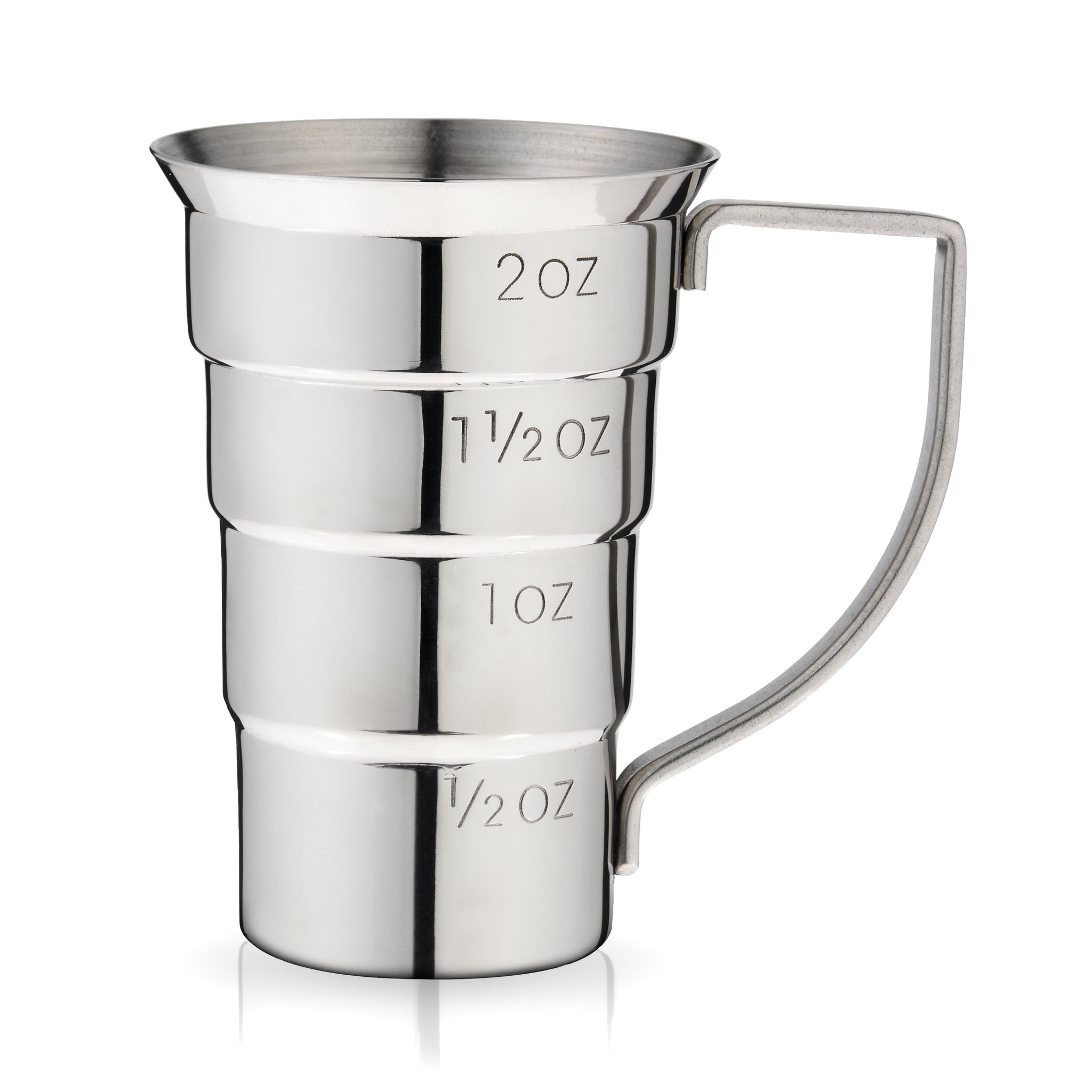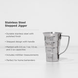 Take your barware to the next level with the Stainless Steel Stepped Jigger. With 4 measurements and external markings, this stepped jigger is a stylish and ultra-functional addition to your barware. The stainless steel finish evokes professional cocktail bar tools, while the handle lets you measure quickly and accurately, no flipping around necessary.