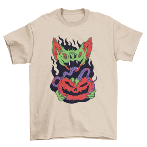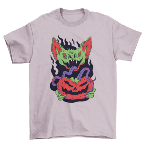 Creepy t-shirt design of a Halloween vampire with a pumpkin.