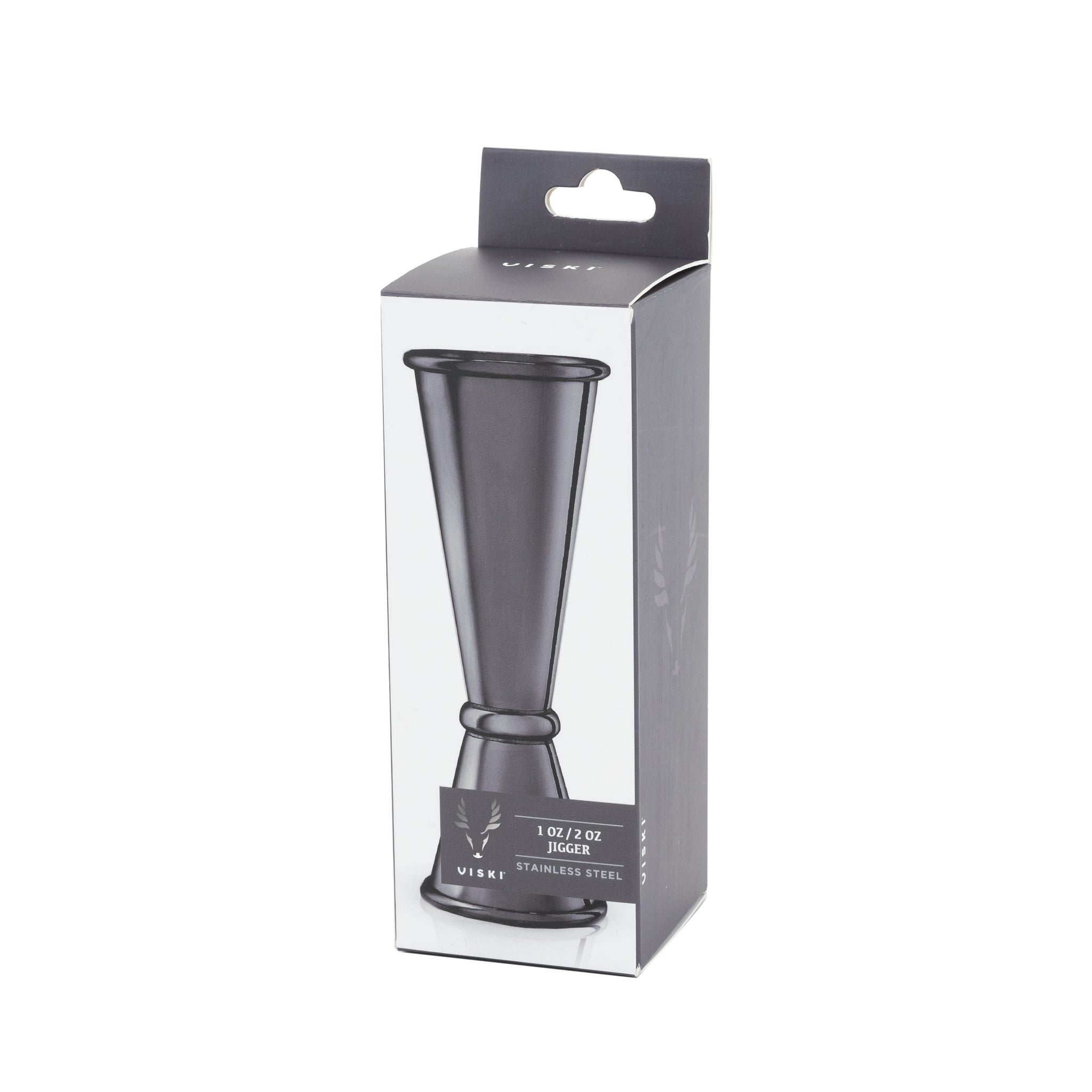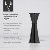 Striking in gunmetal black, our professional Japanese-style double jigger is cast in smooth stainless steel. With a band that separates its one- and two-ounce sections, the interior of each side is scored with pinpoint mixology measurements (1.5, 0.75, and 0.5 ounces).